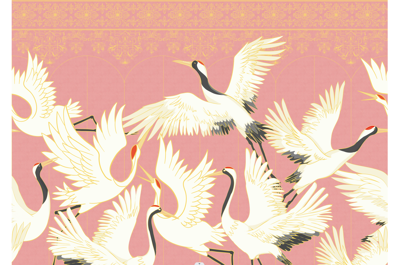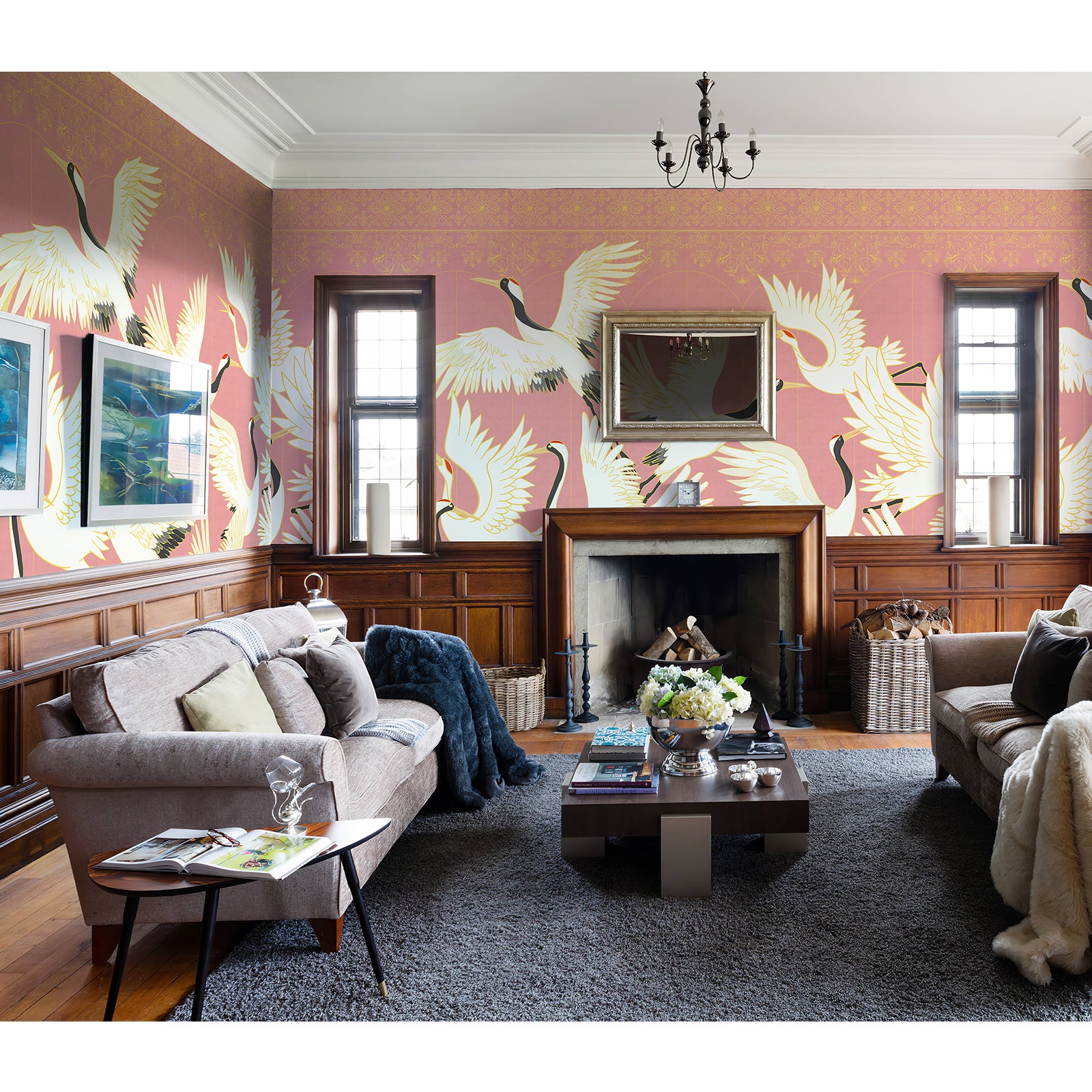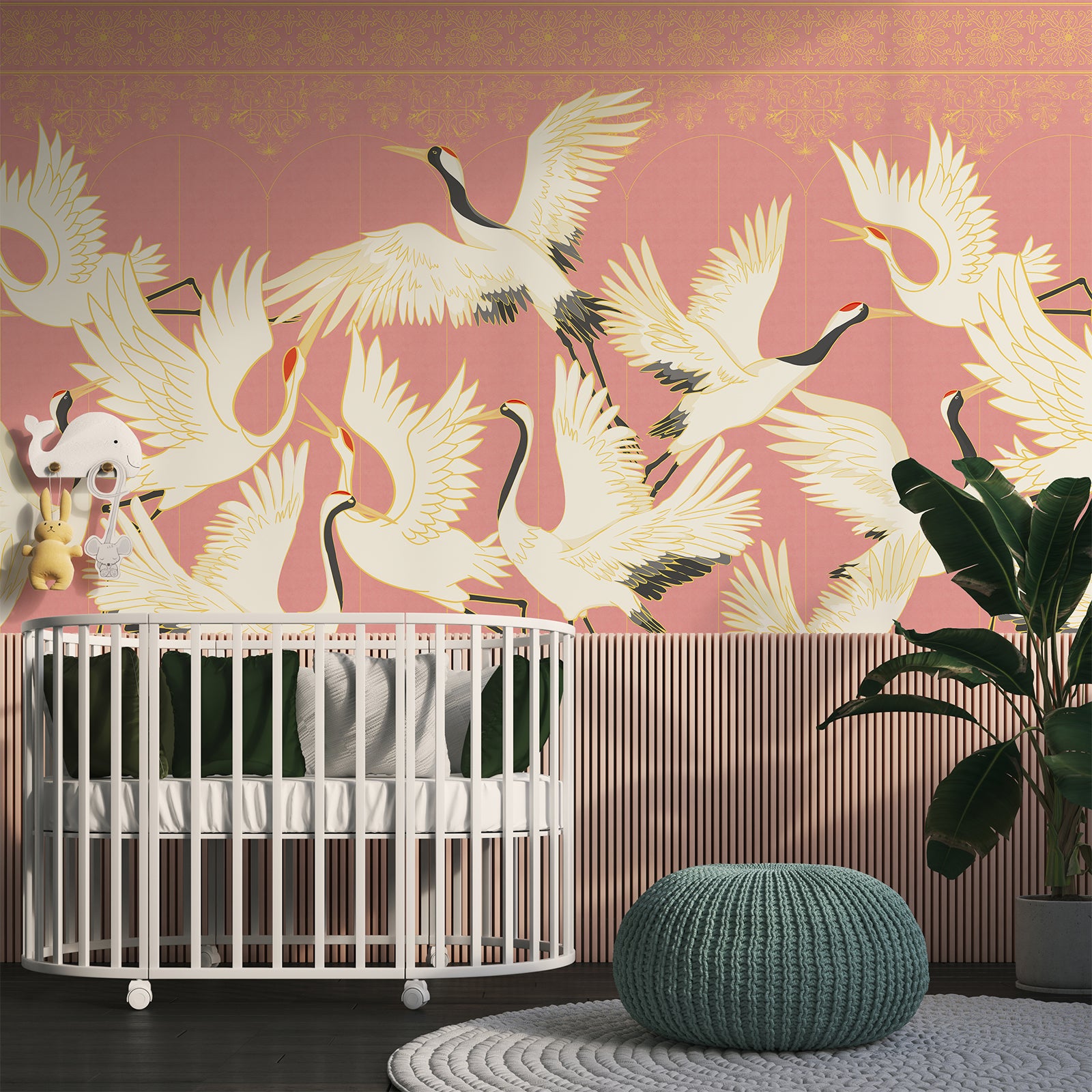 Chinoiserie Crane Mural Pink Wallpaper Mural