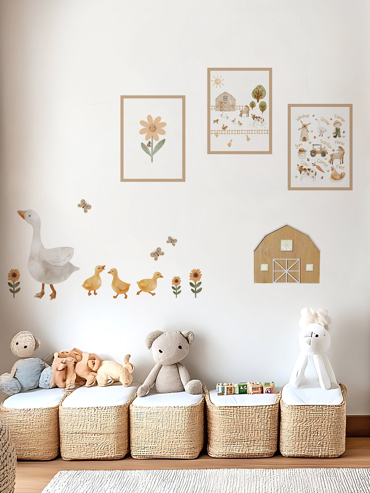 • Top wall decals (die-cut stickers): goose, ducklings, butterflies, sunflowers/flowers and other small accents